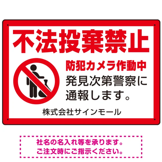 よくある質問:不法投棄禁止 赤枠付きデザイン プレート看板 W450×H300 エコユニボード (SP-SMD488-45x30U)