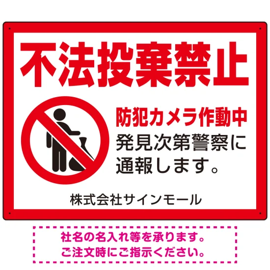 よくある質問:不法投棄禁止 赤枠付きデザイン プレート看板 W600×H450 エコユニボード (SP-SMD488-60x45U)
