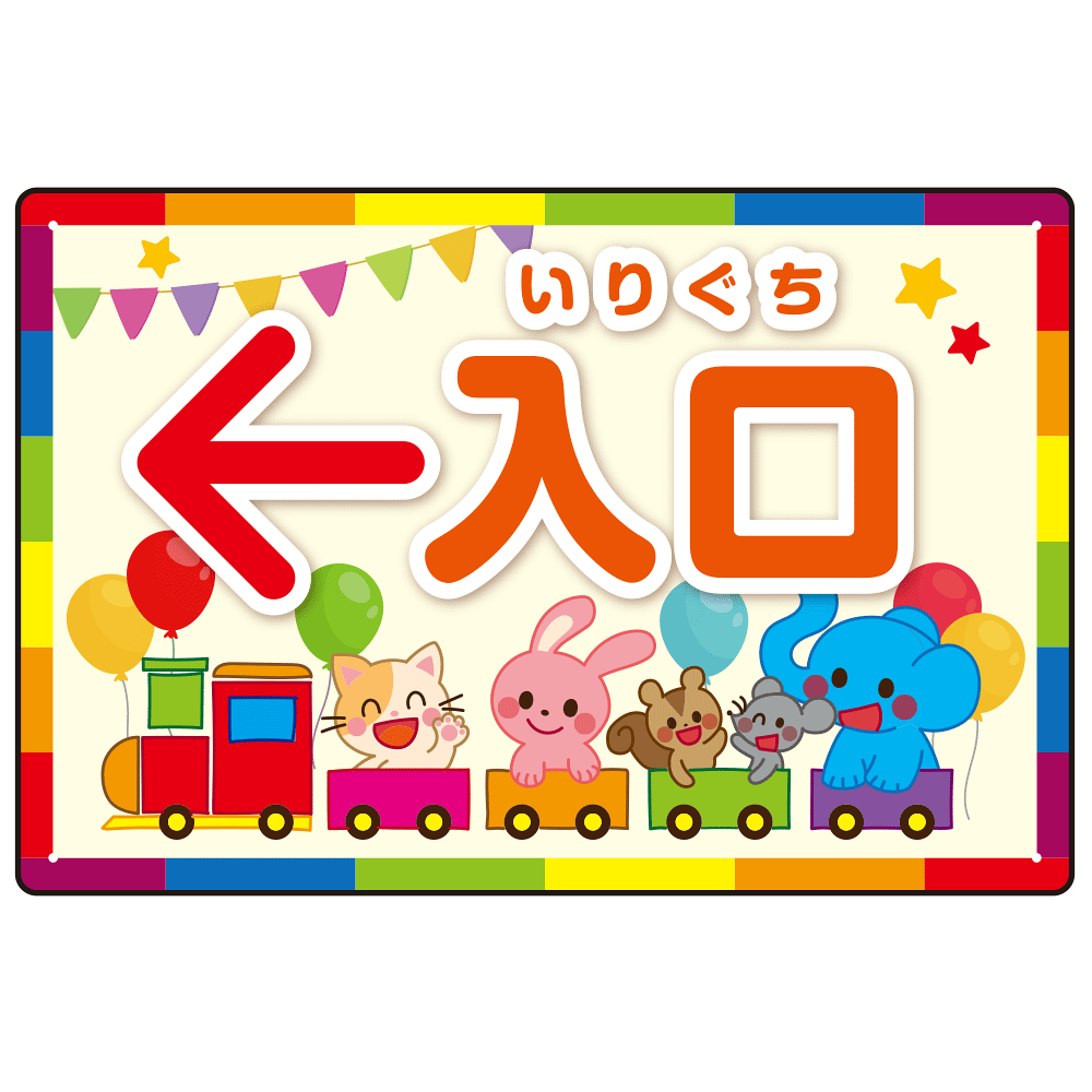 出入り口誘導 可愛い動物イラストデザイン オリジナル プレート看板 入口/左矢印 W450×H300 エコユニボード (SP-SMD507L-45x30U)