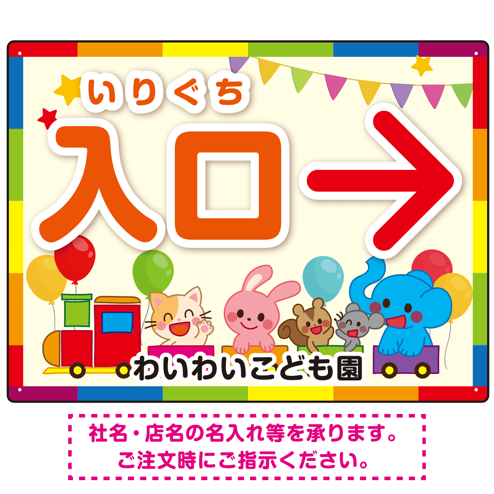 出入り口誘導 可愛い動物イラストデザイン オリジナル プレート看板 入口/右矢印 W600×H450 アルミ複合板 (SP-SMD507R-60x45A)