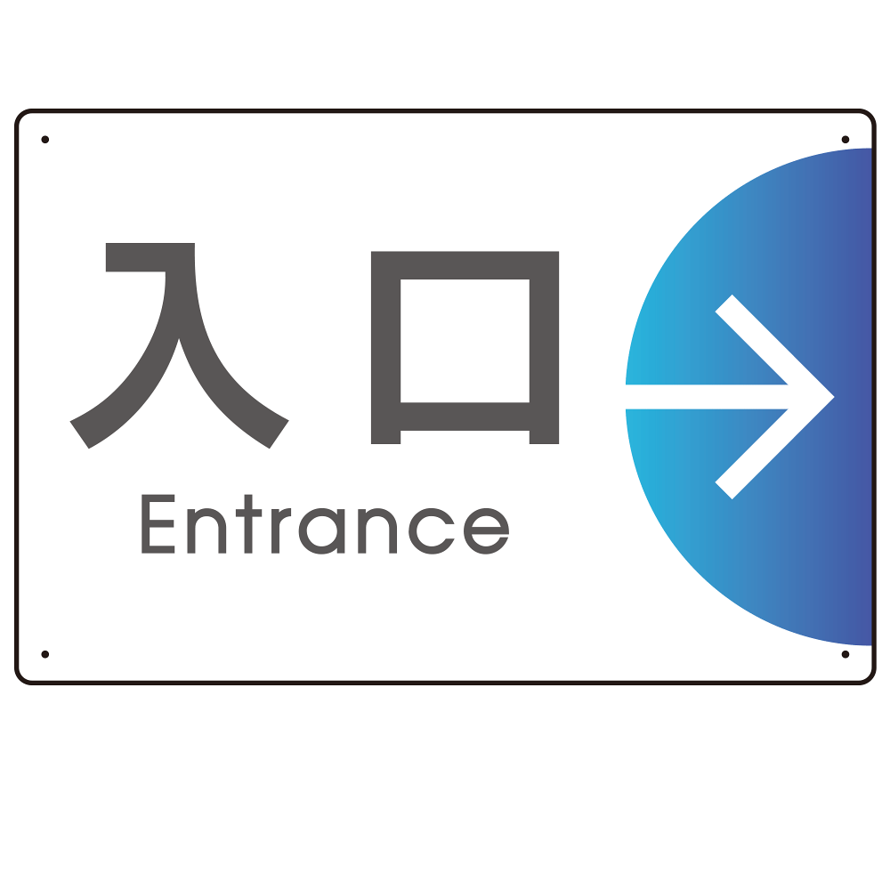- 同一デザインで「入口」「出口」「受付」をご用意。統一感のある出入口誘導に。
