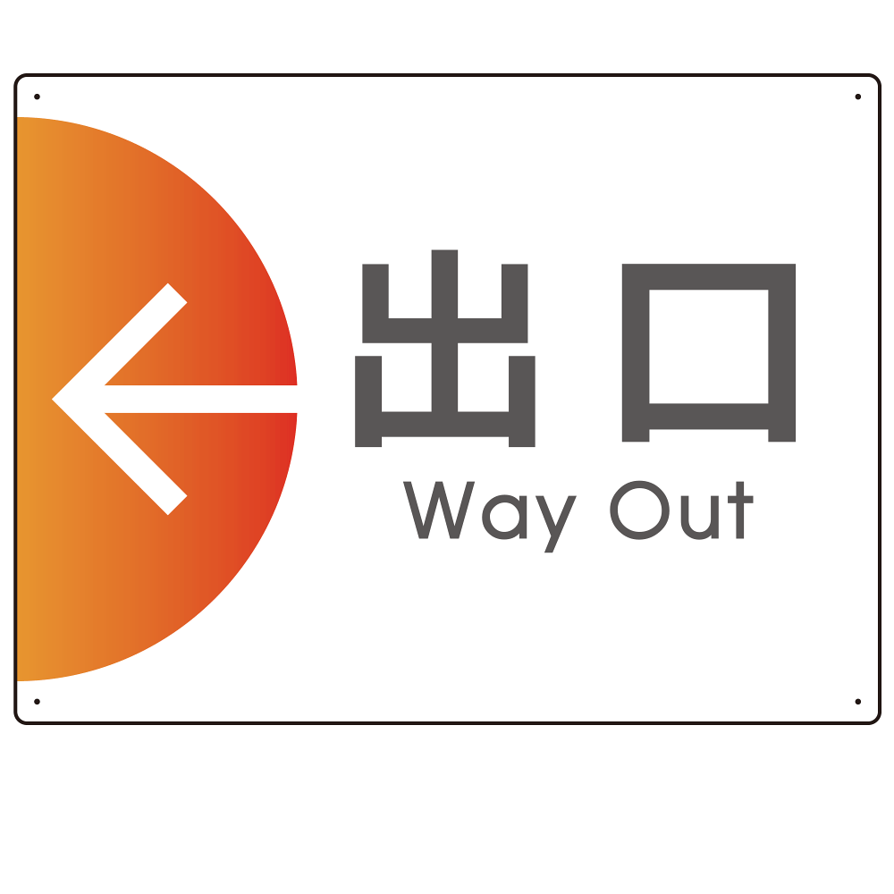 - 同一デザインで「入口」「出口」「受付」をご用意。統一感のある出入口誘導に。