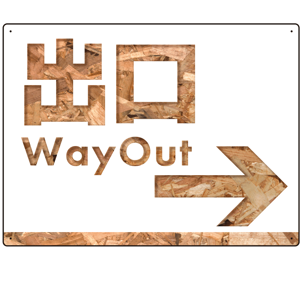 木目柄文字で誘導する出入りサイン オリジナル プレート看板 出口/右矢印 W600×H450 エコユニボード (SP-SMD521R-60x45U)