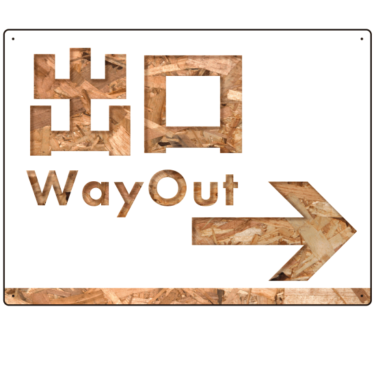 商品説明:木目柄文字で誘導する出入りサイン オリジナル プレート看板 出口/右矢印 W600×H450 エコユニボード (SP-SMD521R-60x45U)