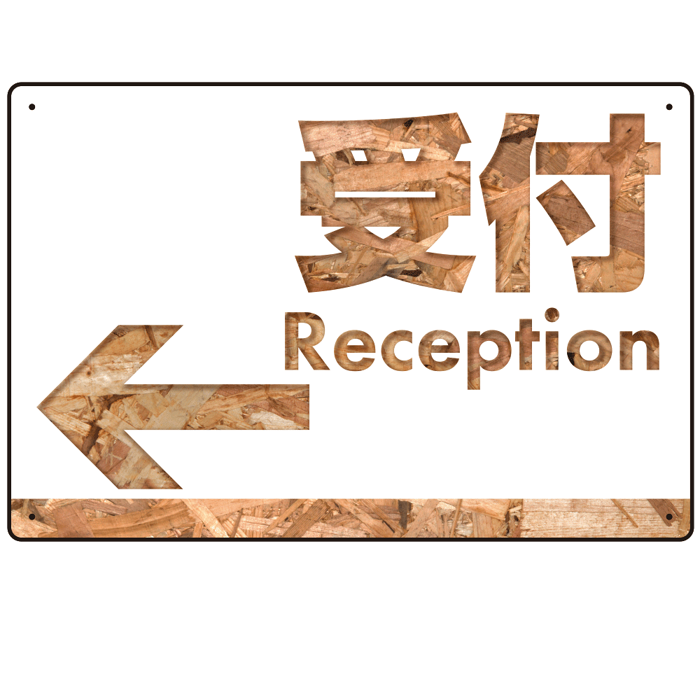 - 木目柄文字で誘導する出入りサイン オリジナル プレート看板 受付/左矢印 W450×H300 アルミ複合板 (SP-SMD522L-45x30A)
