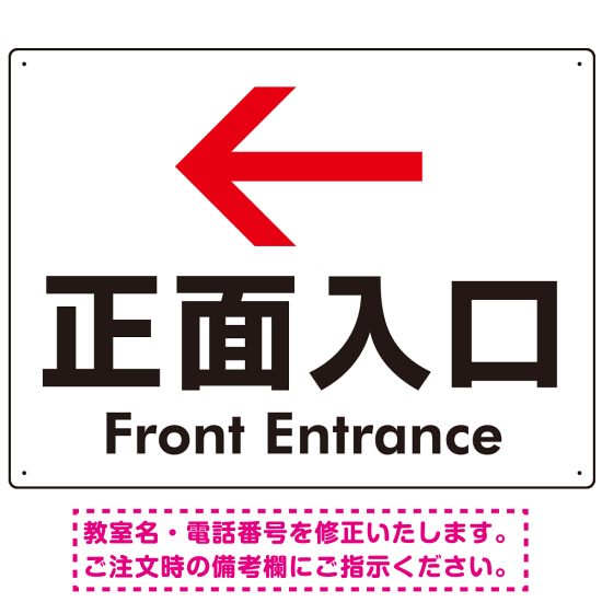矢印で示す 正面入口 誘導サイン シンプルデザイン オリジナル プレート看板 左矢印 W600×H450 エコユニボード (SP-SMD527L-60x45U)