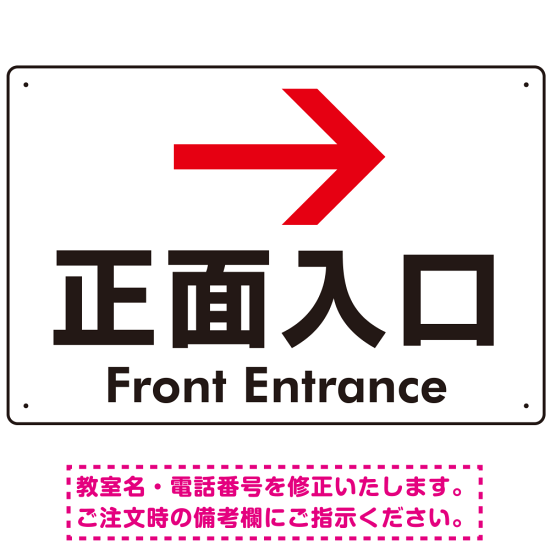 矢印で示す 正面入口 誘導サイン シンプルデザイン オリジナル プレート看板 右矢印 W450×H300 エコユニボード (SP-SMD527R45x30U)