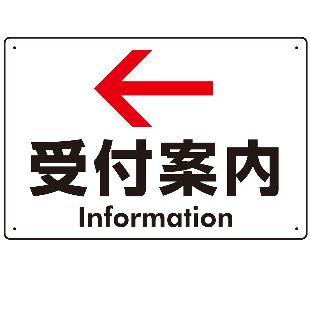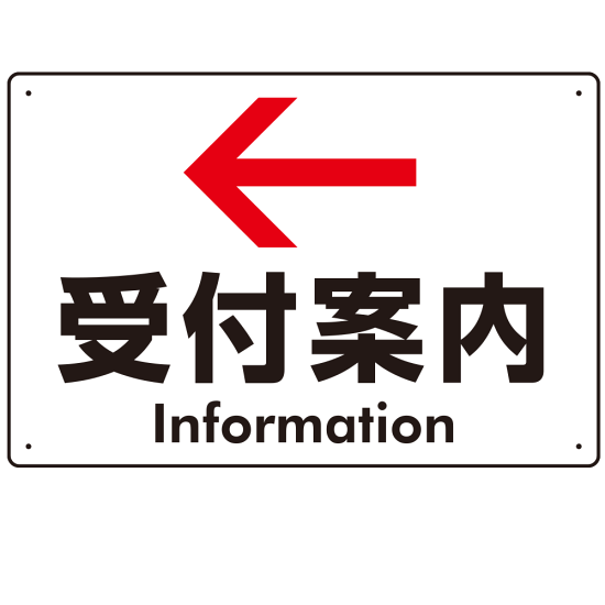 - 受付場所を案内する定番デザインのプレートサイン。白地に黒文字・赤矢印で視認性も抜群です。