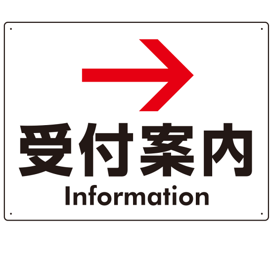 - 受付場所を案内する定番デザインのプレートサイン。白地に黒文字・赤矢印で視認性も抜群です。