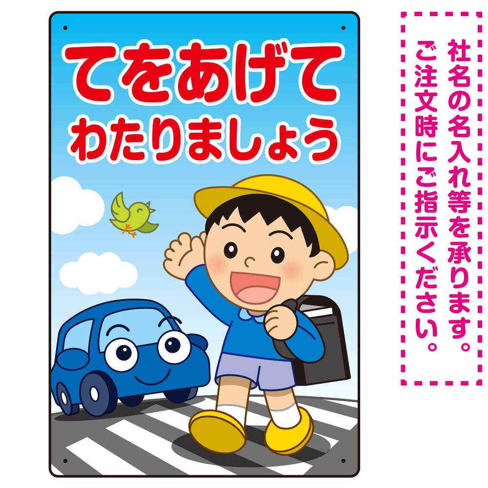 交通安全 てをあげてわたりましょう 描き下ろしイラストデザイン プレート看板 タテ型 450×300 エコユニボード (SP-SMD531-45x30U)