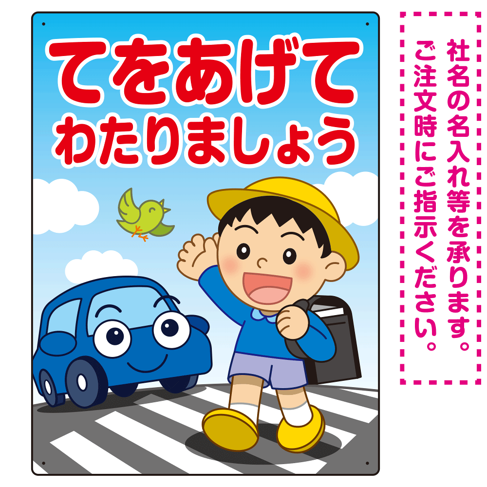 交通安全 てをあげてわたりましょう 描き下ろしイラストデザイン プレート看板 タテ型 600×450 エコユニボード (SP-SMD531-60x45U)