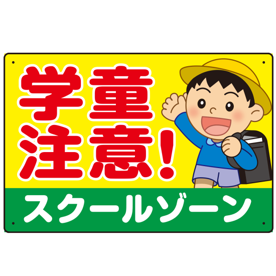 学童注意 スクールゾーン 元気な男の子イラスト デザイン プレート看板 ヨコ型 450×300 エコユニボード (SP-SMD535-45x30U)