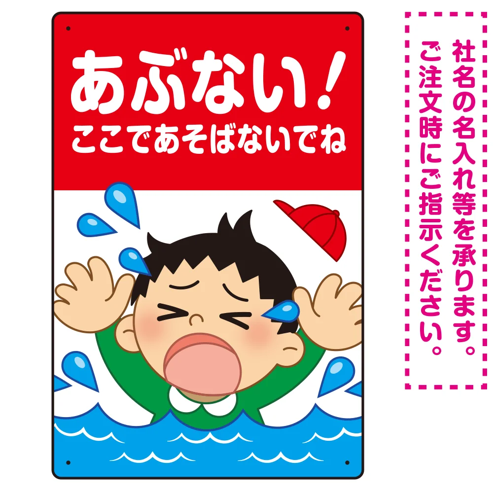 - あぶない!ここで遊ばないで 溺れる男の子イラスト プレート看板