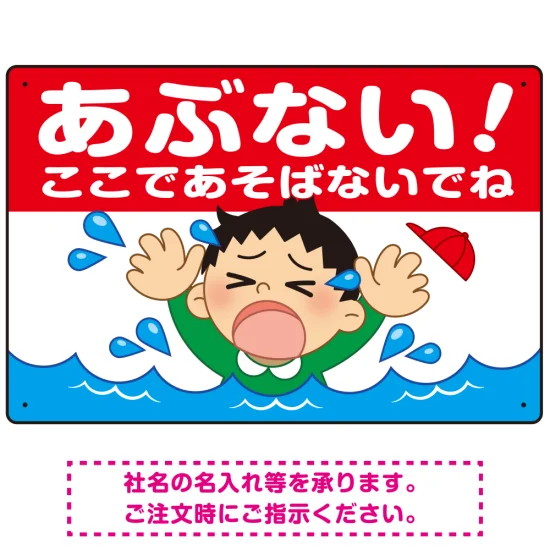 - あぶない!ここで遊ばないで 溺れる男の子イラスト プレート看板