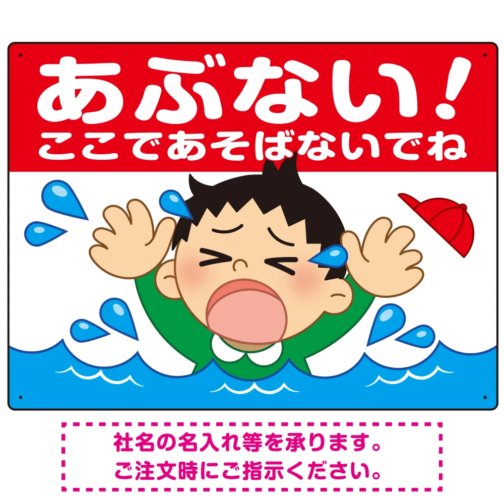 - あぶない!ここで遊ばないで 溺れる男の子イラスト プレート看板