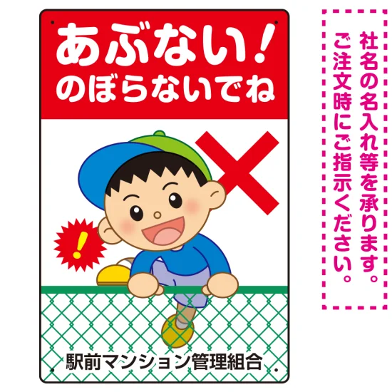 - あぶない のぼらないで フェンスを登る男の子イラスト プレート看板 タテ型 450×300 アルミ複合板 (SP-SMD546-45x30A)