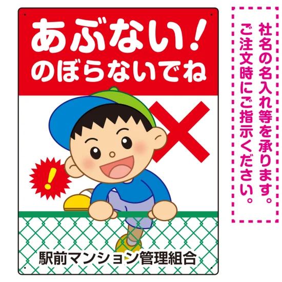- あぶない のぼらないで フェンスを登る男の子イラスト プレート看板 タテ型 600×450 アルミ複合板 (SP-SMD546-60x45A)