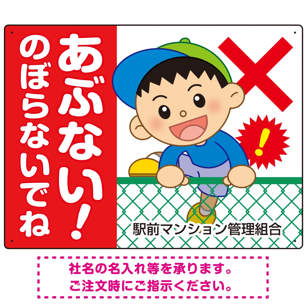 - あぶない のぼらないで フェンスを登る男の子イラスト プレート看板 ヨコ型 600×450 アルミ複合板 (SP-SMD547-60x45A)