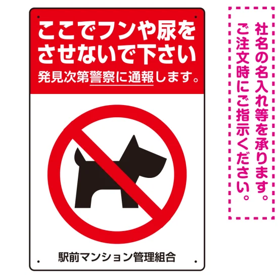 よくある質問:ペットの糞尿禁止 犬のシルエット付き強めのデザイン プレート看板 タテ型 450×300 エコユニボード (SP-SMD552T-45x30U)