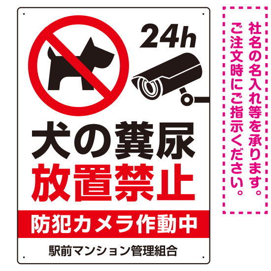 ペットの糞尿禁止 防犯カメラ作動中 犬のシルエットデザイン プレート看板 タテ型 600×450 エコユニボード (SP-SMD553T-60x45U)