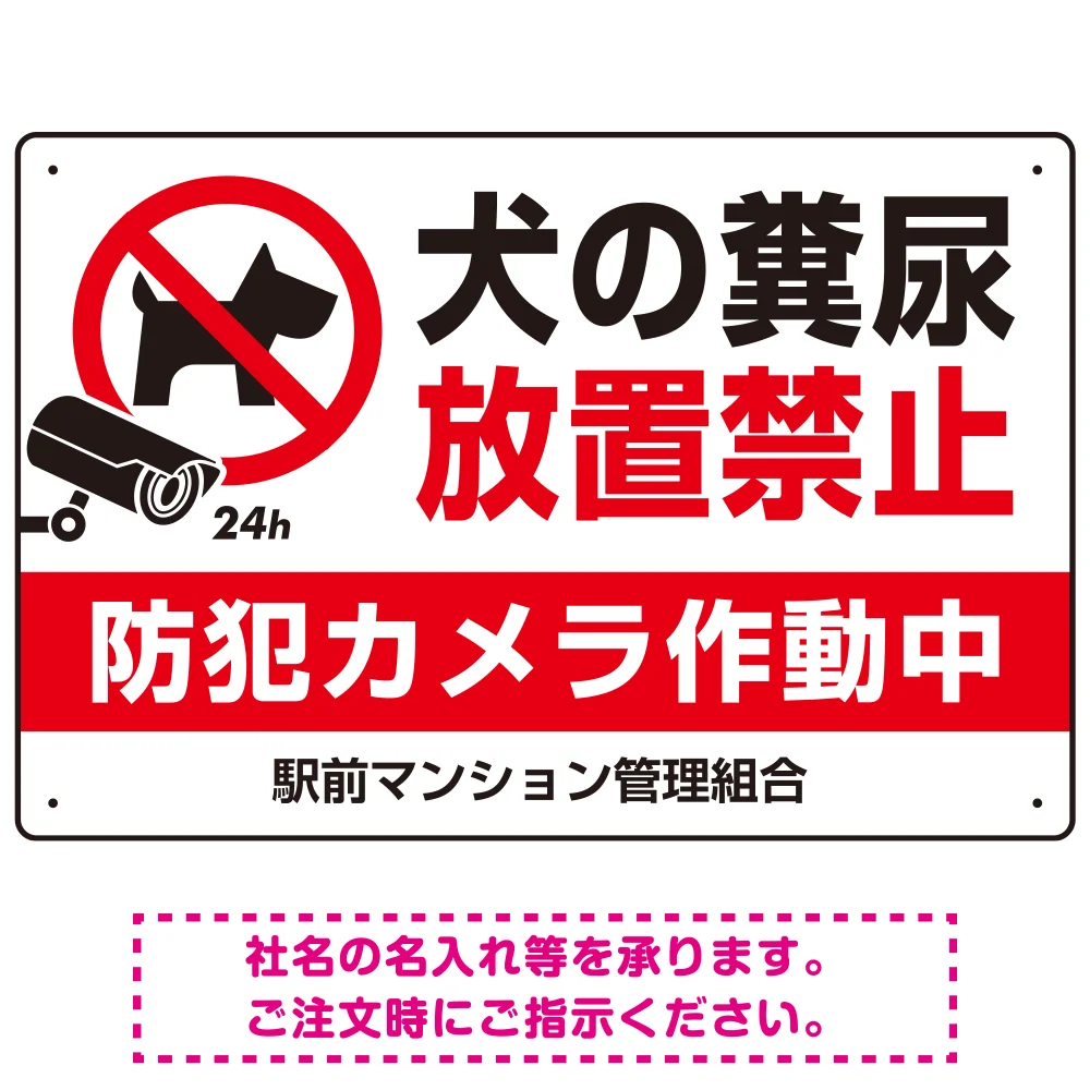 - ペットの糞尿禁止 防犯カメラ作動中 犬のシルエットデザイン プレート看板