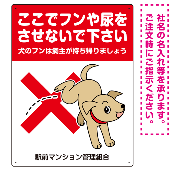 商品説明:目を引くわんちゃんイラスト ペットの糞尿禁止 デザイン プレート看板 タテ型 600×450 エコユニボード (SP-SMD554T-60x45U)