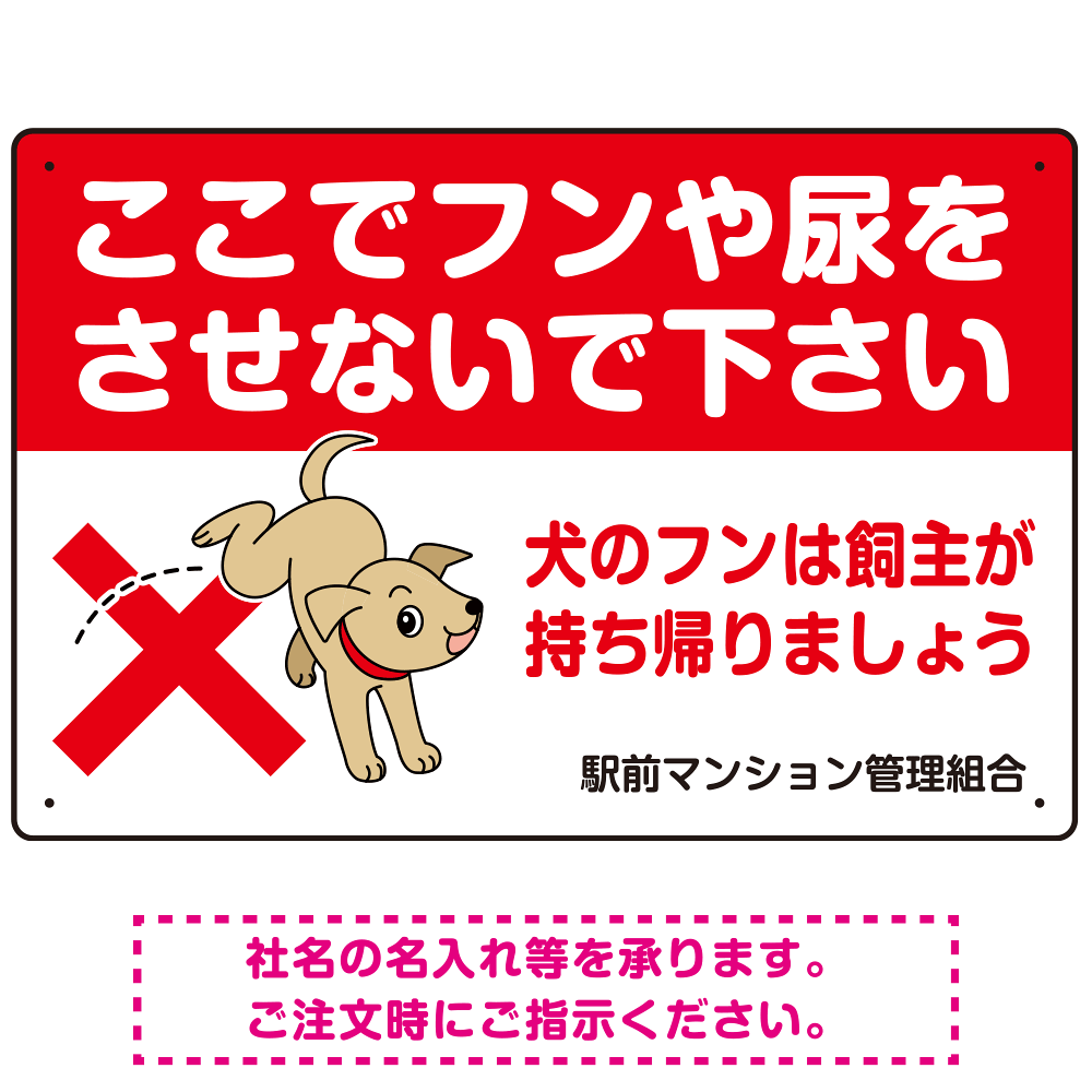 商品説明:目を引くわんちゃんイラスト ペットの糞尿禁止 デザイン プレート看板 ヨコ型 450×300 エコユニボード (SP-SMD554Y-45x30U)