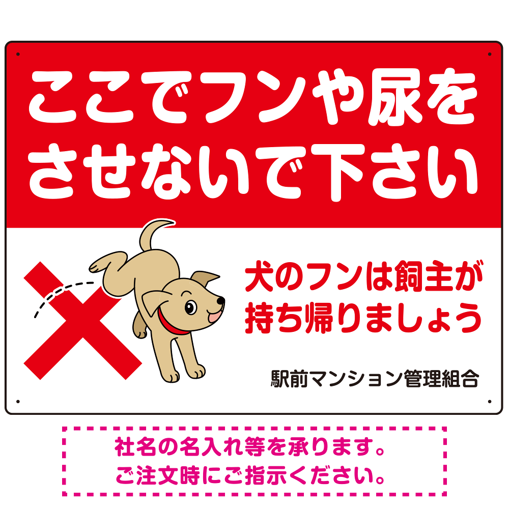商品説明:目を引くわんちゃんイラスト ペットの糞尿禁止 デザイン プレート看板 ヨコ型 600×450 エコユニボード (SP-SMD554Y-60x45U)