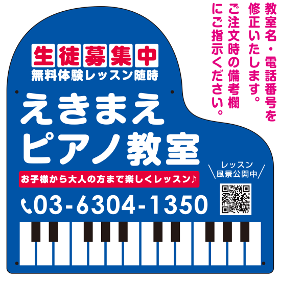 - ご希望の文字内容をご注文時の備考欄やメールやFAXにてご指示ください。※教室名・電話番号の修正費は料金に含まれております。