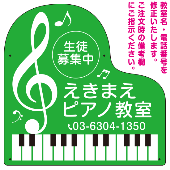 - ご希望の文字内容をご注文時の備考欄やメールやFAXにてご指示ください。※教室名・電話番号の修正費は料金に含まれております。