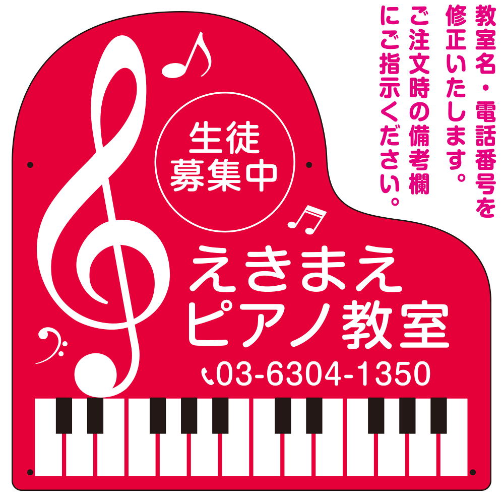 ピアノの形の変形プレート看板。大きな音符がアイキャッチ効果に。カラーバリエーションも豊富にご用意。