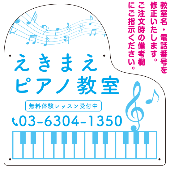 - ご希望の文字内容をご注文時の備考欄やメールやFAXにてご指示ください。※教室名・電話番号の修正費は料金に含まれております。