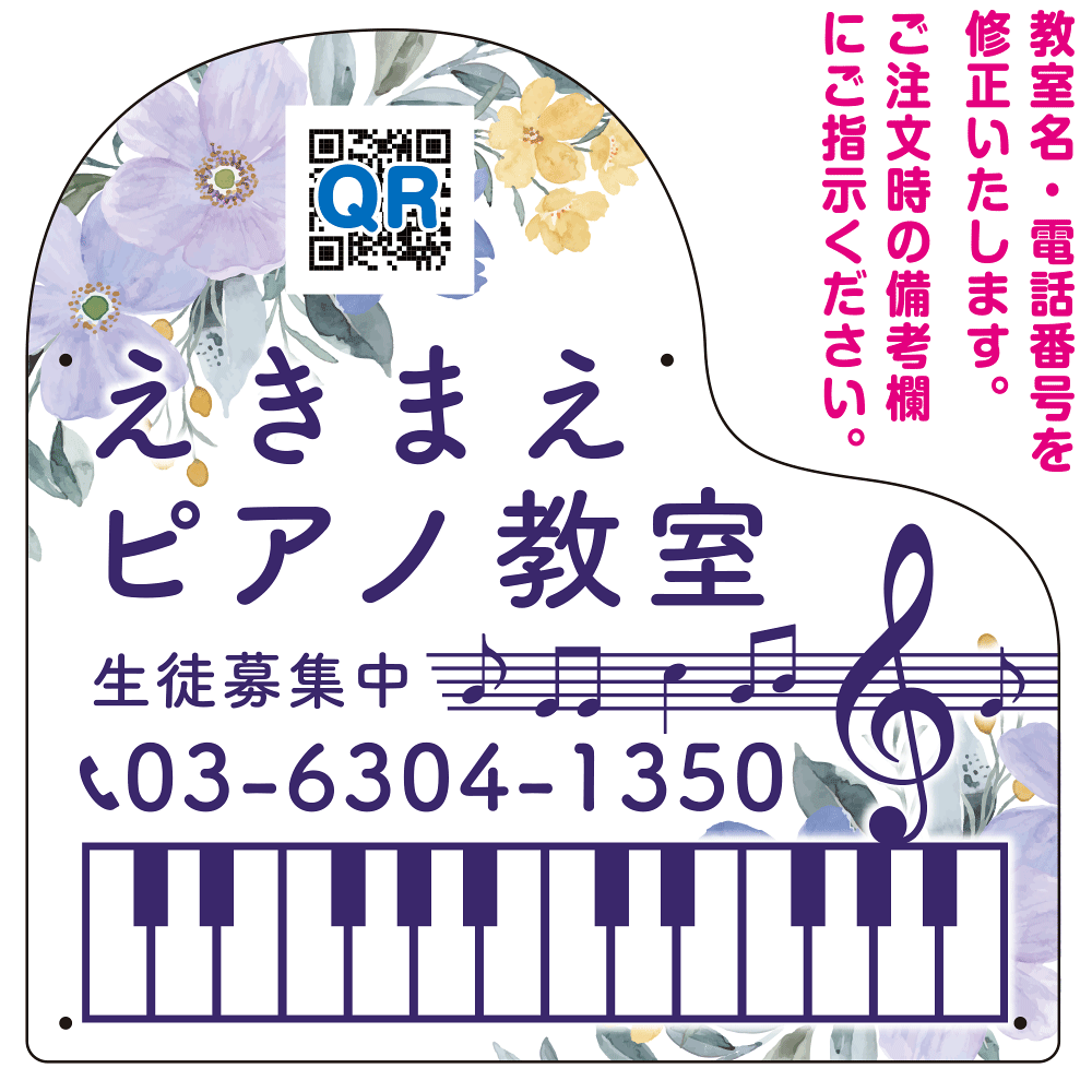 - ご希望の文字内容をご注文時の備考欄やメールやFAXにてご指示ください。※教室名・電話番号の修正費は料金に含まれております。