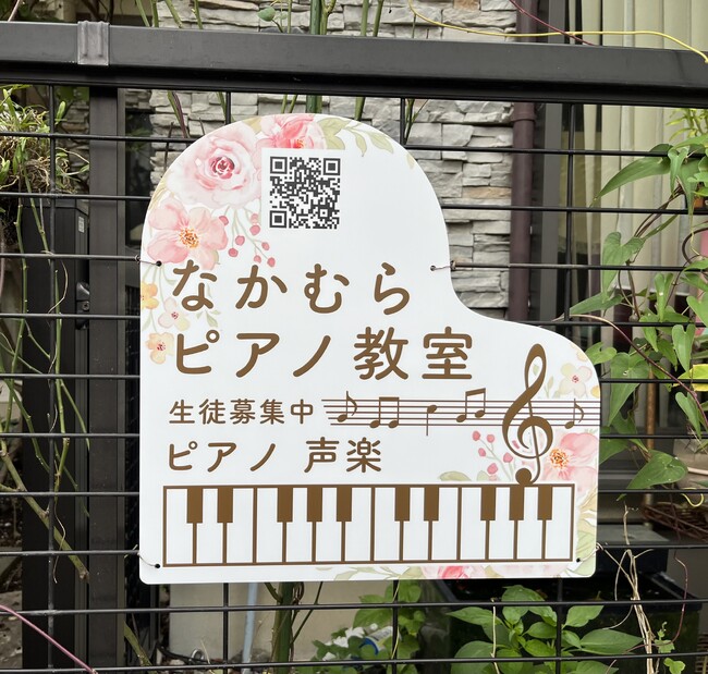 - ピアノの形に縁取られた音楽教室向けの変形プレート看板。