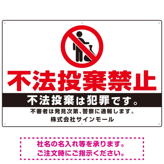 よくある質問:不法投棄禁止 白地シンプルデザイン プレート看板 W900×H600 エコユニボード (SP-SMD468-90x60U)