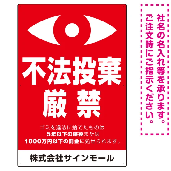 - 監視の目イラスト付き不法投棄厳禁 警告デザイン オリジナル プレート看板