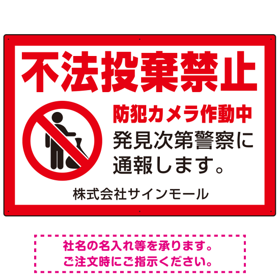 商品説明:不法投棄禁止 赤枠付きデザイン プレート看板 W900×H600 エコユニボード (SP-SMD488-90x60U)