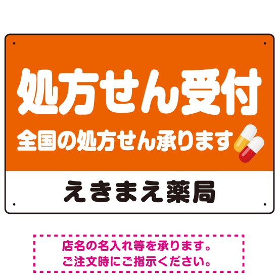 処方せん受付 シンプル2行デザイン オリジナル プレート看板 オレンジ W450×H300 エコユニボード (SP-SMD559A-45x30U)