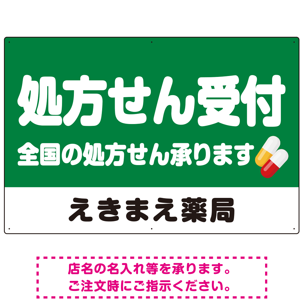 商品説明:処方せん受付 シンプル2行デザイン オリジナル プレート看板 グリーン W900×H600 アルミ複合板 (SP-SMD559B-90x60A)
