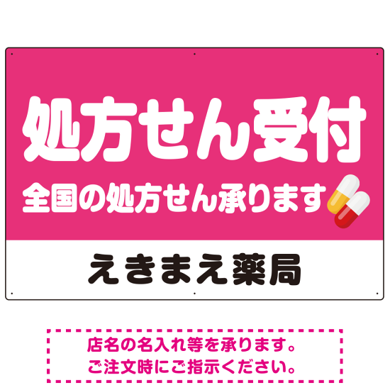 - 処方せん受付 シンプル2行デザイン オリジナル プレート看板 ピンク W900×H600 エコユニボード (SP-SMD559D-90x60U)