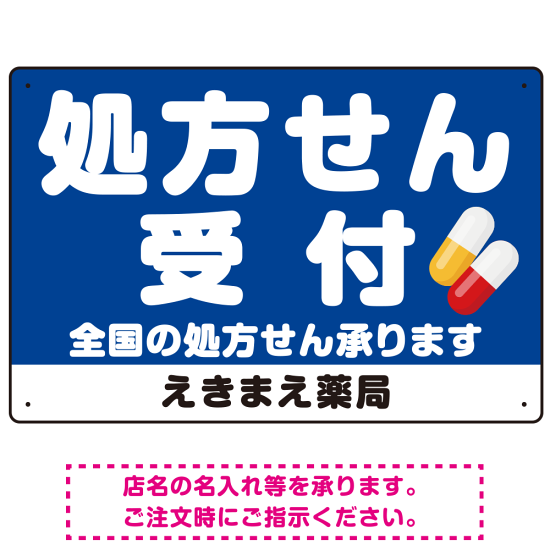 大きな文字の処方せん受付デザイン オリジナル プレート看板 ブルー W450×H300 アルミ複合板 (SP-SMD560C-45x30A)