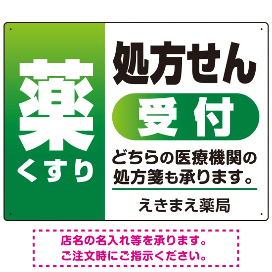 - 薬 くすり 処方せん受付 グラデーションデザイン オリジナル プレート看板 グリーン W600×H450 アルミ複合板 (SP-SMD563B-60x45A)