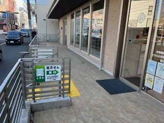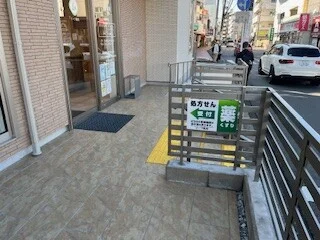 - 「薬」の一文字でアイキャッチ。処方せん受付をPRするプレート看板です。