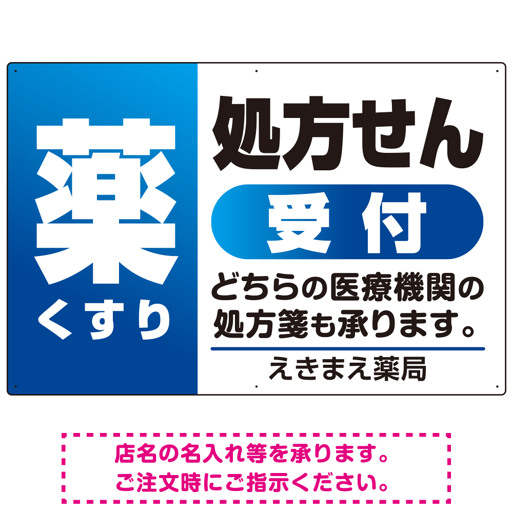 薬 くすり 処方せん受付 グラデーションデザイン オリジナル プレート看板 ブルー W900×H600 エコユニボード (SP-SMD563C-90x60U)
