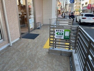 - 「薬」の一文字でアイキャッチ。処方せん受付をPRするプレート看板です。