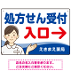 白衣の女性イラストがご案内する矢印付き入口案内サインプレート。処方せん受付案内にぜひ。