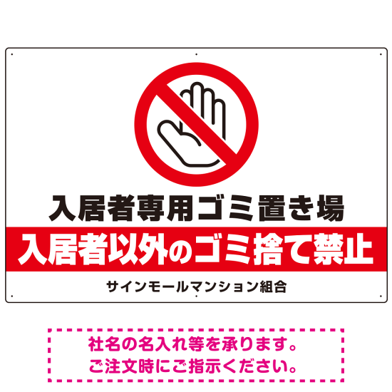 入居者専用ゴミ置き場 大きなピクトデザイン プレート看板 手のひらSTOP W900×H600 エコユニボード (SP-SMD573-90x60U)