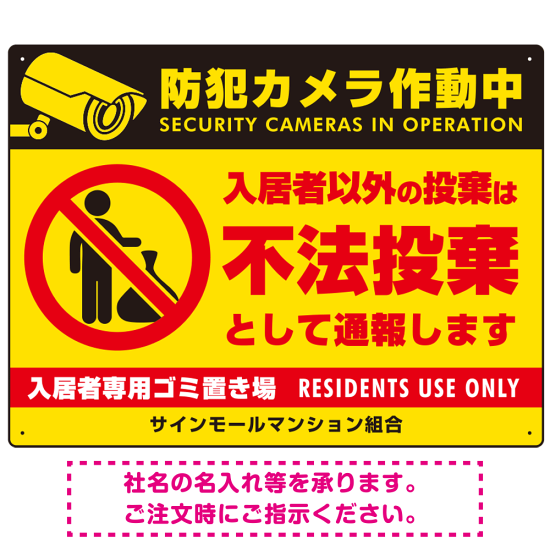 防犯カメラ・入居者以外 不法投棄デザイン オリジナル プレート看板 ゴミを置く人(黄) W600×H450 エコユニボード (SP-SMD578-60x45U)