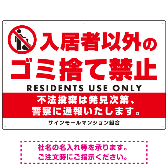 入居者以外のゴミ捨て禁止デザイン プレート看板 W900×H600 エコユニボード (SP-SMD577-90x60U)