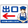 エプロン着衣の女性のイラストが目を引く出口案内サイン。分かりやすい矢印付きデザイン。